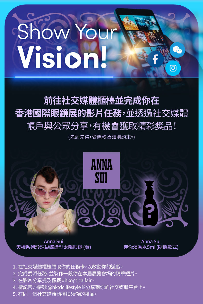 請親臨香港貿發局香港國際眼鏡展,飽覽一系列引人入勝的國際品牌,掌握最新的眼鏡設計潮流!